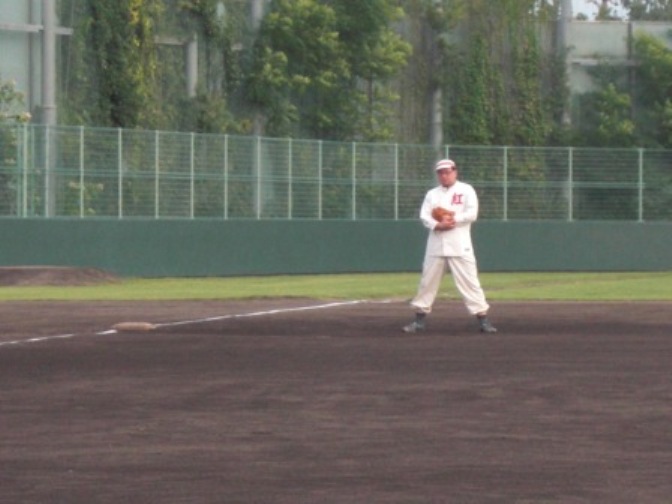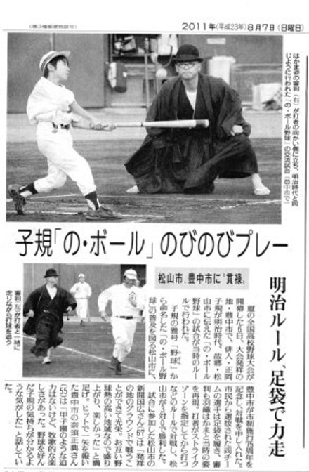の・ボール?? 初めて聞く競技でしたが、明治時代の野球を再現したもので、参加してみると結構楽しいものでありました。