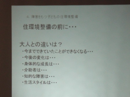 次に講師が実際に携わっている現場、特に子ども関係の住環境整備について 写真と動画をふんだんに使った講義となりました。