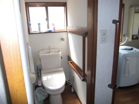 写真は、実際に手すりや、家具転倒防止金具を取り付けた一例。